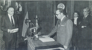 Entre los siete mejores corredores de 100 metros del país en 1956, todos ellos con una marca de 11 segundos, figuraba Jesús Hermida Cebreiro, natural de Santiago de Compostela (1933) pero entregado de corazón a la ciudad de Marín a la que llegó con seis años. Ningún otro deporte le entusiasmó tanto como el atletismo, fue internacional ante Sarre y sobresalió como dirigente. Después de emplearse a fondo en la preparación de los II Juegos Atléticos Iberoamericanos de 1962 en la capital de España, el presidente de la Federación Española de Atletismo, Manuel Albizu, lo integró en su equipo donde desempeñó el cargo de secretario general. Jesús Hermida también se convirtió en un directivo reconocido en el mundo del deporte universitario y en 1980 acabó llegando a las más altas instancias del deporte nacional. Porque en 1980 fue el hombre designado para sustituir al vigués Benito Castejón como director general del Consejo Superior de Deportes (CSD), cuya denominación fue sustituida prácticamente de inmediato por la de secretario de Estado-presidente del CSD; en este cometido estuvo hasta 1982. La imagen corresponde al momento en el que Hermida jura el cargo en el CSD ante el ministro de Cultura Ricardo de la Cierva en los últimos días de enero de 1980. Además, el que fuera atleta de la Sociedad Gimnástica de Pontevedra, fue elegido presidente del Comité Olímpico Español (COE), en el que permaneció desde 1980 a 1983.