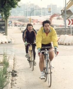 Estos dos hombres en bicicleta no van de paseo, aunque pueda parecerlo; lo que están haciendo el 13 de junio de 1992, domingo por la mañana, es medir el recorrido por el que habría de transcurrir la carrera de maratón de los Juegos Olímpicos de Barcelona. El primero de ellos es el catalán Pep Solé y tras él, sonriente, transita el gallego de Santiago de Compostela Jorge Touriño, nacido en 1954, quien desarrolló el cometido de coordinador general de las pruebas de marcha y maratón en tan importante cita de la Ciudad Condal. Touriño, juez de atletismo desde 1977 y Medidor de la IAAF con grado A (título superior) desde el año 1993, había realizado en Londres, en 1989, el curso para obtener esta acreditación. Fue precisamente ese año de 1989 cuando se estableció la medición con la bicicleta calibrada. El santiagués, que ejerció como presidente nacional de jueces entre 2003 y 2008, en su dilatada trayectoria (atleta antes que juez, mediofondista en la SD Compostela y en el Club Universitario de Atletismo, CUA) tuvo también mucha responsabilidad en otras competiciones de calado: Copa del Mundo de Maratón en San Sebastián (1993), el maratón de los Campeonatos del Mundo de Atenas (1997) y Sevilla (1999), ganados ambos por Abel Antón, así como el Campeonato del Mundo de Medio Maratón de Palermo (1999), Veracruz (2000) y Vilamoura (2003).