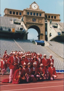 De los más de trescientos jueces que participaron en el desarrollo de las pruebas de atletismo de los Juegos Olímpicos de Barcelona 1992, diecisiete eran gallegos, los que aquí posan (solo falta Luis Ruade Alonso) en el estadio de Montjuic el día 8 de agosto, que acabó siendo un día maravilloso e inolvidable porque Fermín Cacho realizó una hazaña acaso impensable: conquistó la medalla de oro de 1.500 metros. Se había convocado a ese colectivo imprescindible que son los jueces a una reunión y también para ser inmortalizados (todos los componentes fueron fotografiados en grupo y además por autonomías). De izquierda a derecha y de arriba abajo figuran, de pie: José Antonio Dasilva González, José Antonio Bastos González, José Manuel Martínez Fernández, Belén Martínez Freire, Ramón Docal Lago, Jesús Alonso Braña, Rosa Janeiro Caramés, José María López del Río, Francisco Javier Vázquez Güemes y Genaro Lago Freitas; agachados, María del Carmen Pérez Conde, Jorge Blanco Chao, Eloy Bretal Cancelas, Carlos Barreiro Carbajal, Ramón Jorge Touriño Lado y Juan Figueroa Souto. A todos ellos les sonrió la fortuna al poder participar en tan sugestivo acontecimiento. Y es que desde la Federación Española de Atletismo se tuvo que negociar lo suyo para que no hubiera solo jueces catalanes (como éstos pretendían) y sí que intervinieran de otros puntos de España; al final, el reparto quedó así: 192 jueces de Cataluña y 160 de las demás autonomías.