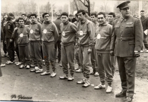 Se estaba acabando febrero de 1965 cuando, en la Casa de Campo madrileña, la selección española militar de cross se adjudicaba, por vez primera, el XV Cross Internacional Militar (el equivalente al certamen mundial de la especialidad para la milicia) y Pedro Escamilla daba testimonio de ello escribiendo que “el equipo luchó con una fe, un ahínco y una ilusión difícilmente igualables”. Los protagonistas de aquella eufórica jornada alcanzaron la meta en estas posiciones: Lorenzo Gutiérrez (5º), Carlos Pérez (6º), Javier Álvarez Salgado (8º), Jesús Fernández España (9º), Eloy Martín (10º), José Luis Guerrero (20º), José Miguel Maiz (25º) y Antonio Gómez (43º), clasificándose 84 corredores. Individualmente, nadie fue capaz de intimidar al tunecino Mohamed Gamoudi (subcampeón olímpico), un excepcional corredor. El conjunto español, que no partía como favorito, dejó atrás, por este orden, a las selecciones de Marruecos, Túnez, Bélgica, Alemania, Irlanda, Francia, Italia, Luxemburgo, Senegal y Costa de Marfil. La fotografía nos muestra a la selección española militar aquel día victorioso de febrero del 65, figurando en el grupo, entre otros, el comandante Manuel Fraga Ferrant (1º derecha), el entrenador Gregorio Rojo (2º d), el capitán del equipo José Luis Guerrero (3º d) y dos vigueses sobrados de calidad: Javier Álvarez Salgado (4º d) y Carlos Pérez (7º d).